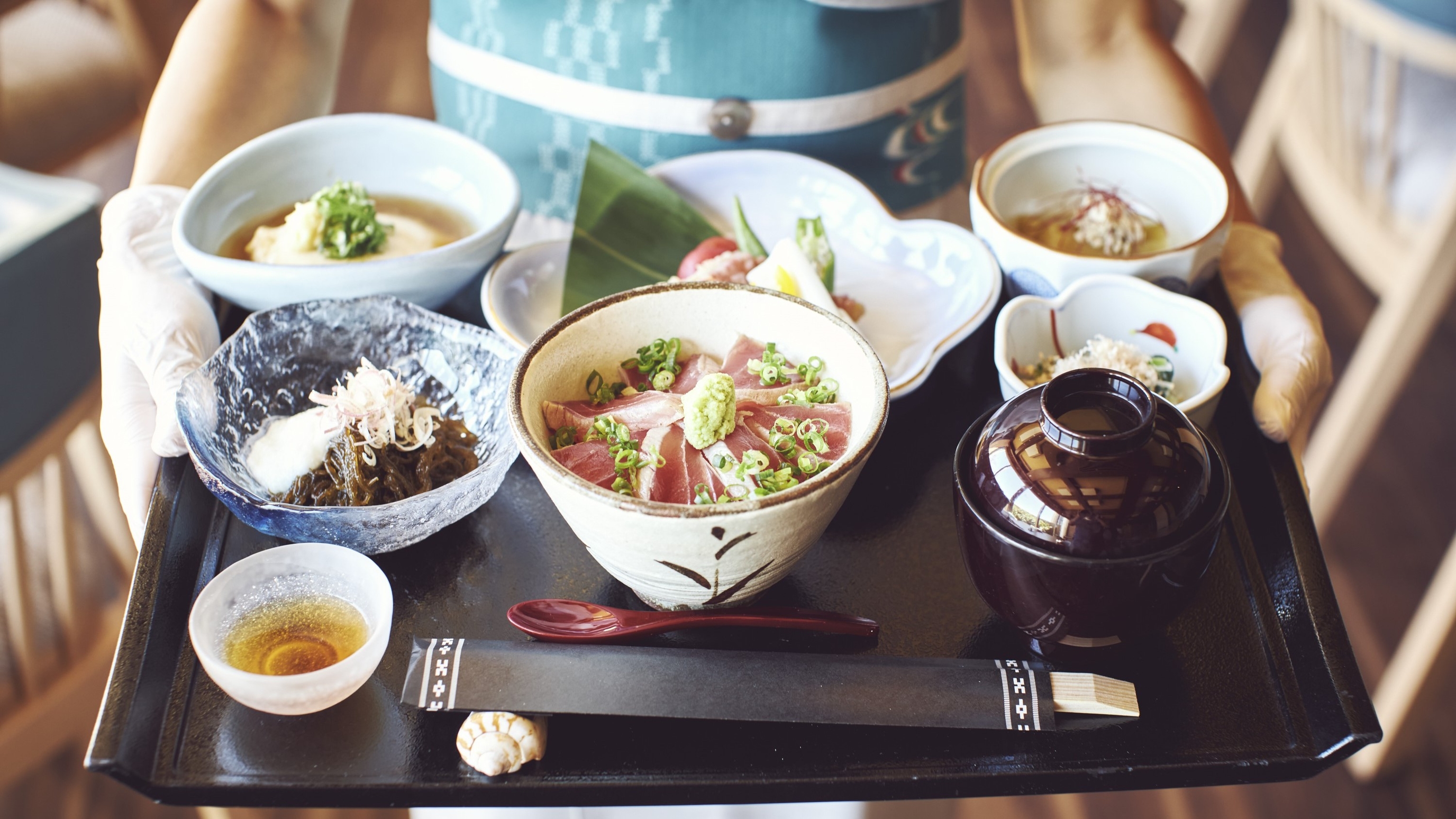 天井が高く高級感のある和食のお店。朝食付きのプランの人はこちらで和朝食をいただくこともできます。Saltidaに比べ沖縄料理がたっぷり出てくるので、石垣らしさを追求する人はこちらで食べてもいいと思います。白ご飯・お粥・マグロ丼からご飯ものを選ぶことができ、おすすめは名産のマグロ丼です。毎日メニューが変わるそうなので、連泊する際も良さそうです。夜の会席料理は¥9,000と13,500があります。