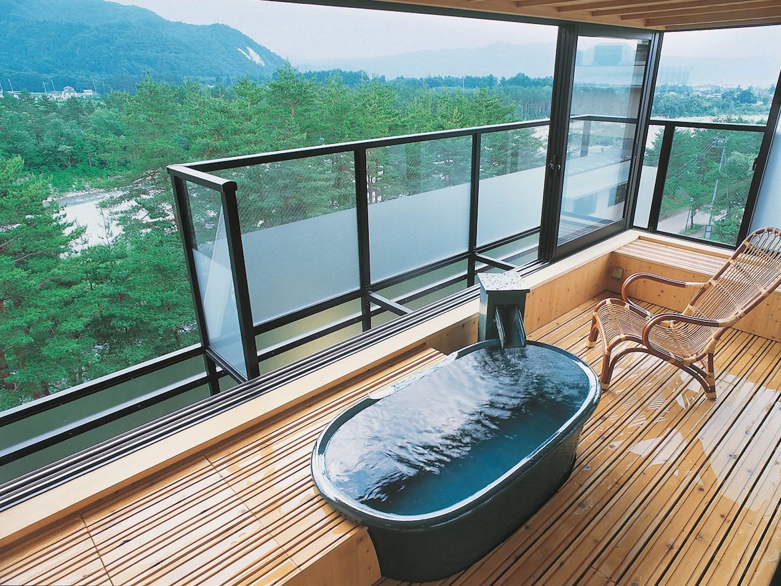 雄大な景色を眺められる展望露天風呂付きの部屋が自慢の和風モダンなホテルです。庭園大浴場も素晴らしく温泉と景色をとことん楽しみたい人にとてもおすすめのホテル。改装仕立ての部屋はとても綺麗で快適。食事もエリンギの味噌焼きやりんごグラタンなど長野ならではの品が並びます。掘りゴタツの部屋も人気があります。
