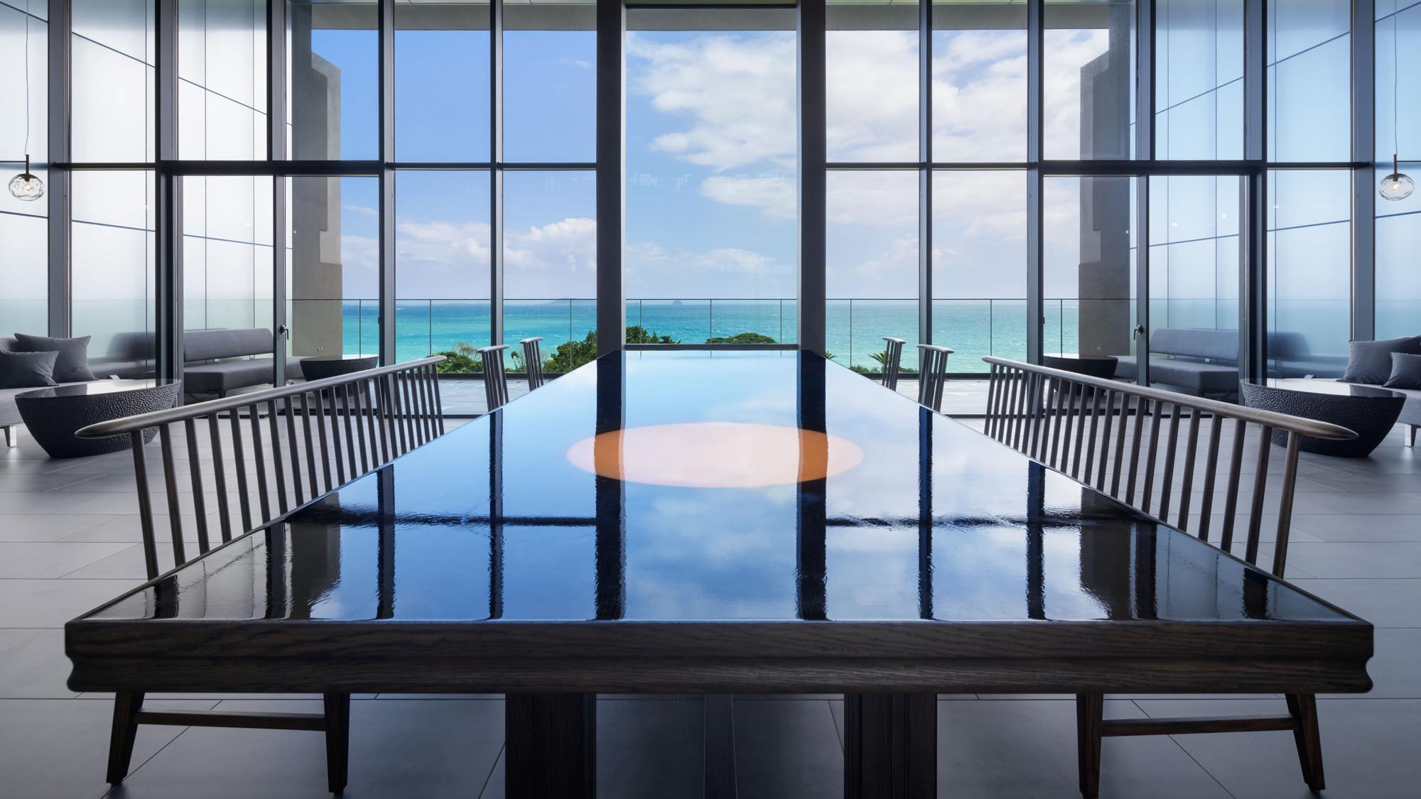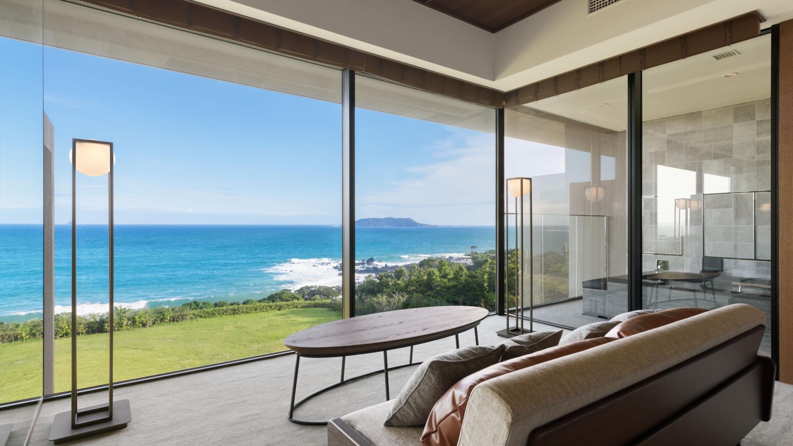 先に紹介した二つのホテルよりお値段はしますが、インテリアやアメニティもさらにハイクオリティなホテルです。窓から見える海や自然が絵になるように計算されているデザインで、客室からやロビーからも美しい風景を堪能できます。すべての部屋がオーシャンビューで露天風呂付き。食事のレベルも高く、新鮮な魚や五島牛などが次々と出てきます。ターミナルからは少し距離があるので、観光の拠点というよりはまったりとお籠もりしたいホテルです。