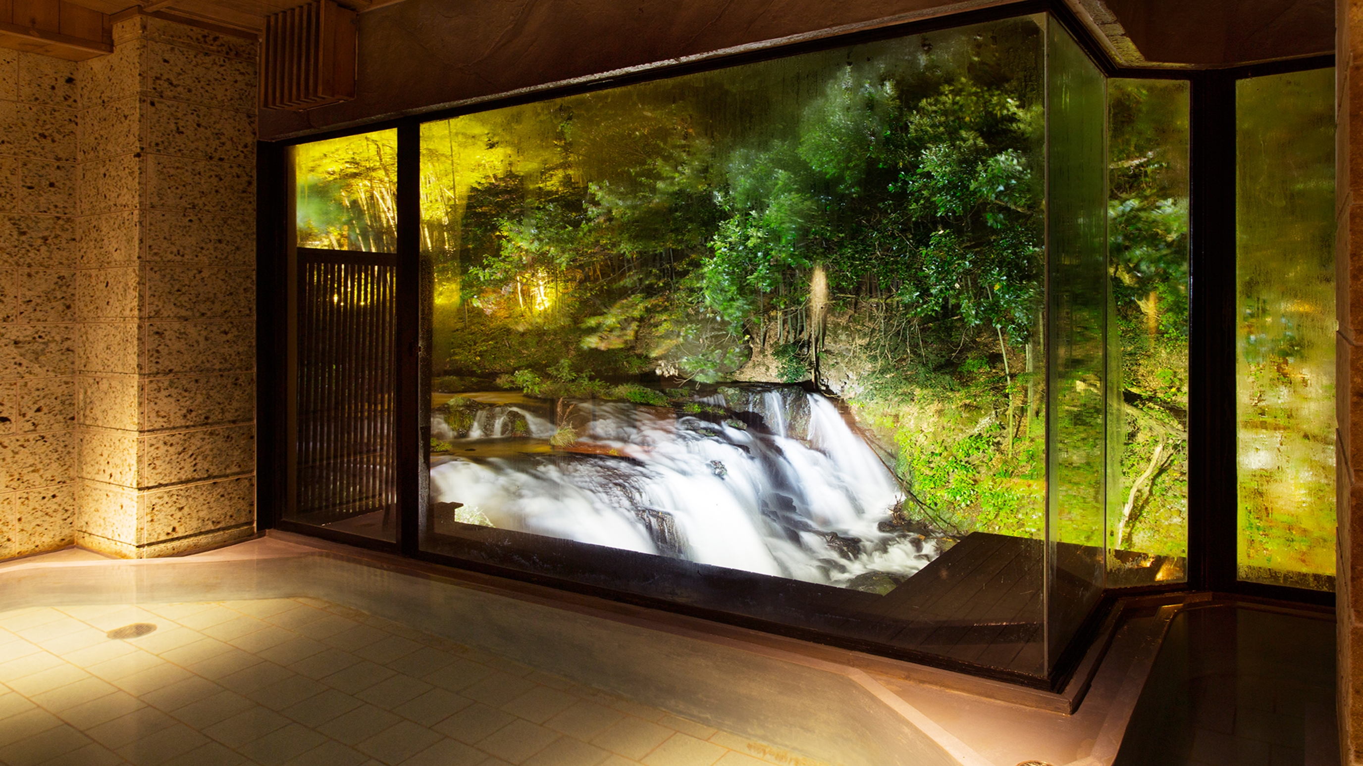 - 東山温泉でも見どころの一つである「伏見の滝」が大浴場から見える