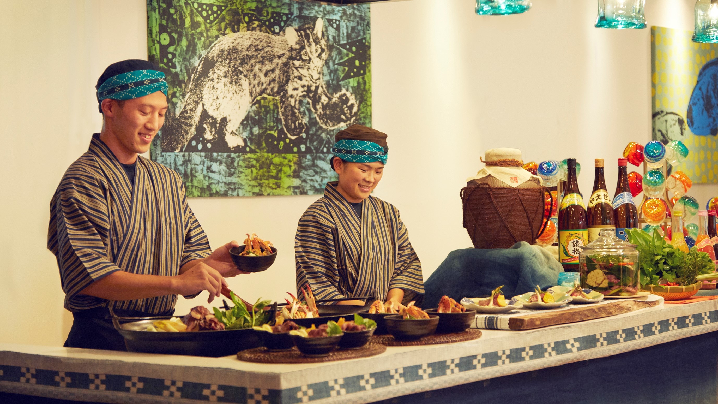 僻地にありながらも、リーズナブルで美味しい食事を出す居酒屋。波照間で食事をしたいならおすすめのお店で、波照間のツアーでもよく使われています。棚には泡波のキープボトルがびっしりと並んでいます。