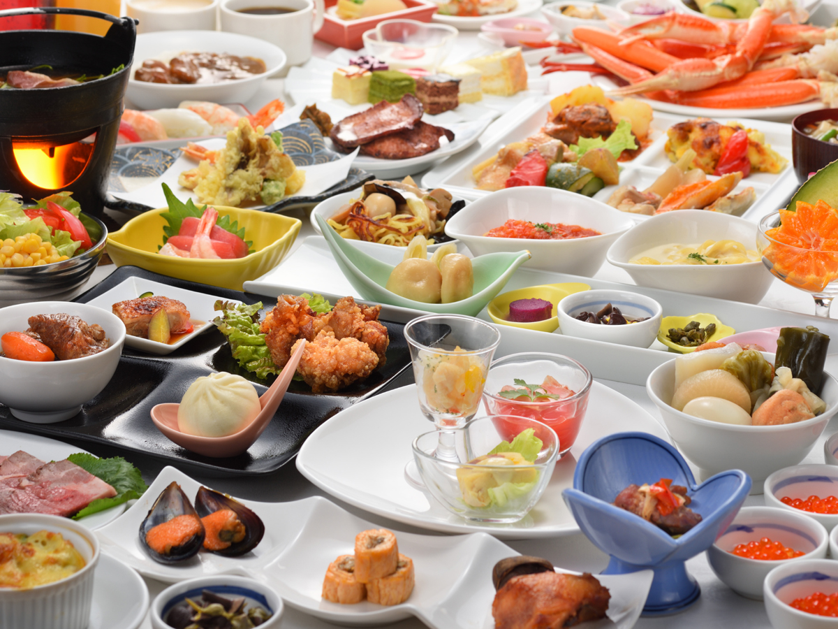 チーズパスタカレーや牛タンが好評。お寿司もあります。仙台名物のせり鍋・ずんだ餅なども。蟹の食べ放題も。身がしっかりしていたという人や味がないという人までコメントは様々。